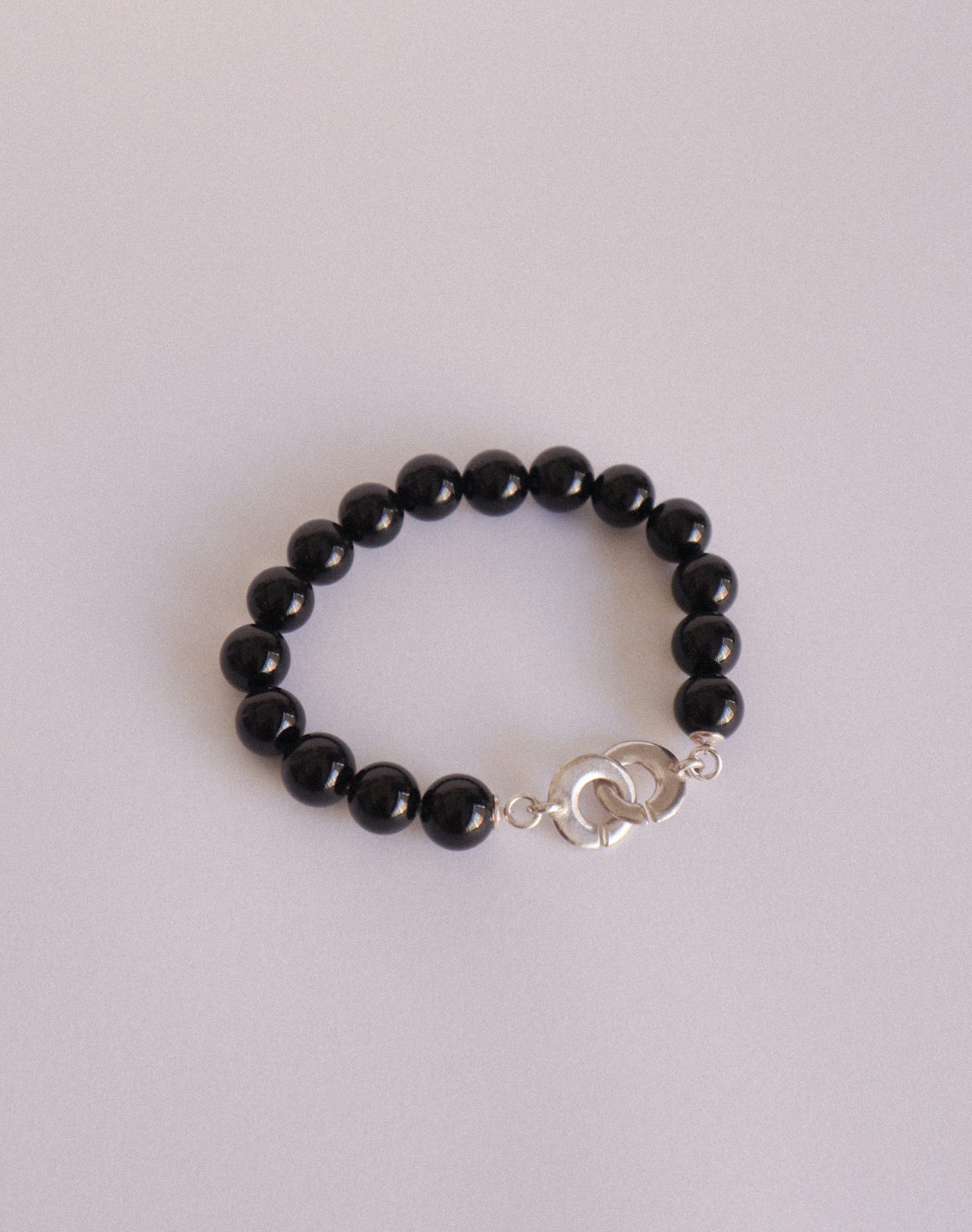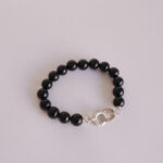Bracelet with medium onyx beads, 20 cm in length, featuring a handcrafted sterling silver clasp. For other lengths, please contact via email. This bracelet can be connected with other pieces, for example, with the Guillem choker.