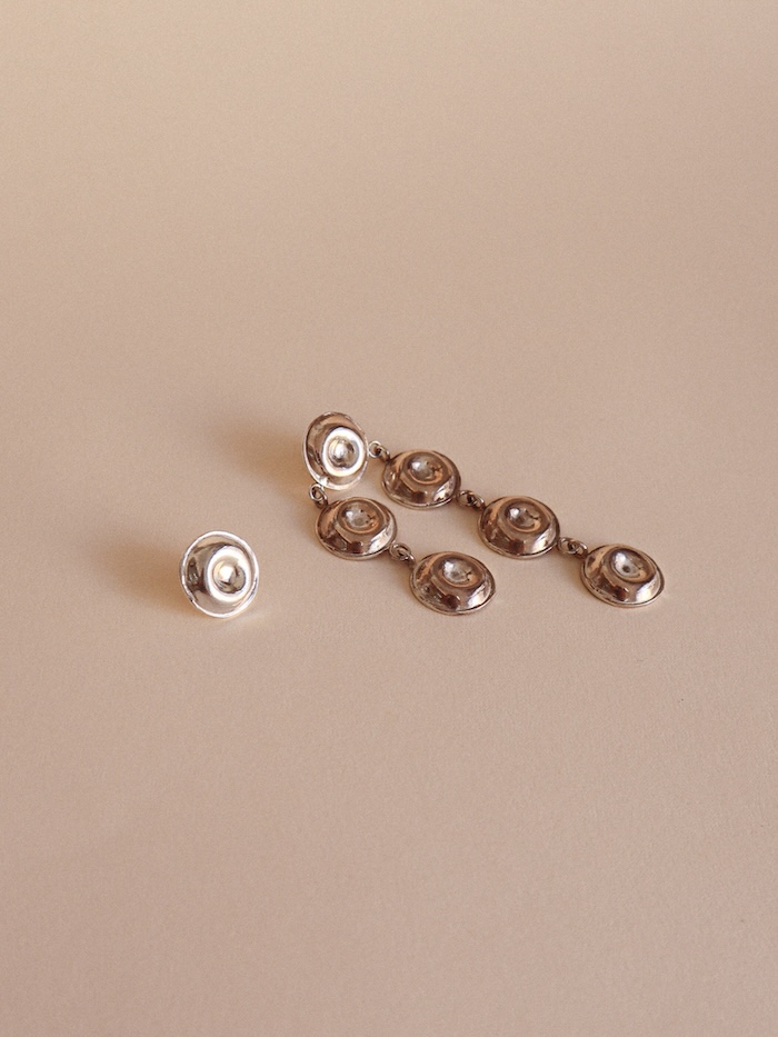 Pendiente artesanal Louis asimétrico en plata de ley. Se vende conjuntamente con el pendiente André. Tiene un largo aproximado de 7 cm.